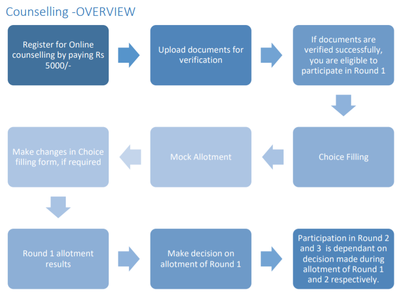 | Decision Making/Confirmation of choice on allotted seat and Fee payment online | From 12 Noon of 18 Dec till 3:00 PM OF 20 DEC |