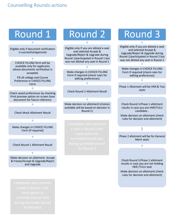 | Reporting to college for (HKR, TULU) Candidates of Phase 1 | From 11:00 AM of 25 Dec till 5:30 PM of 29 Dec |
